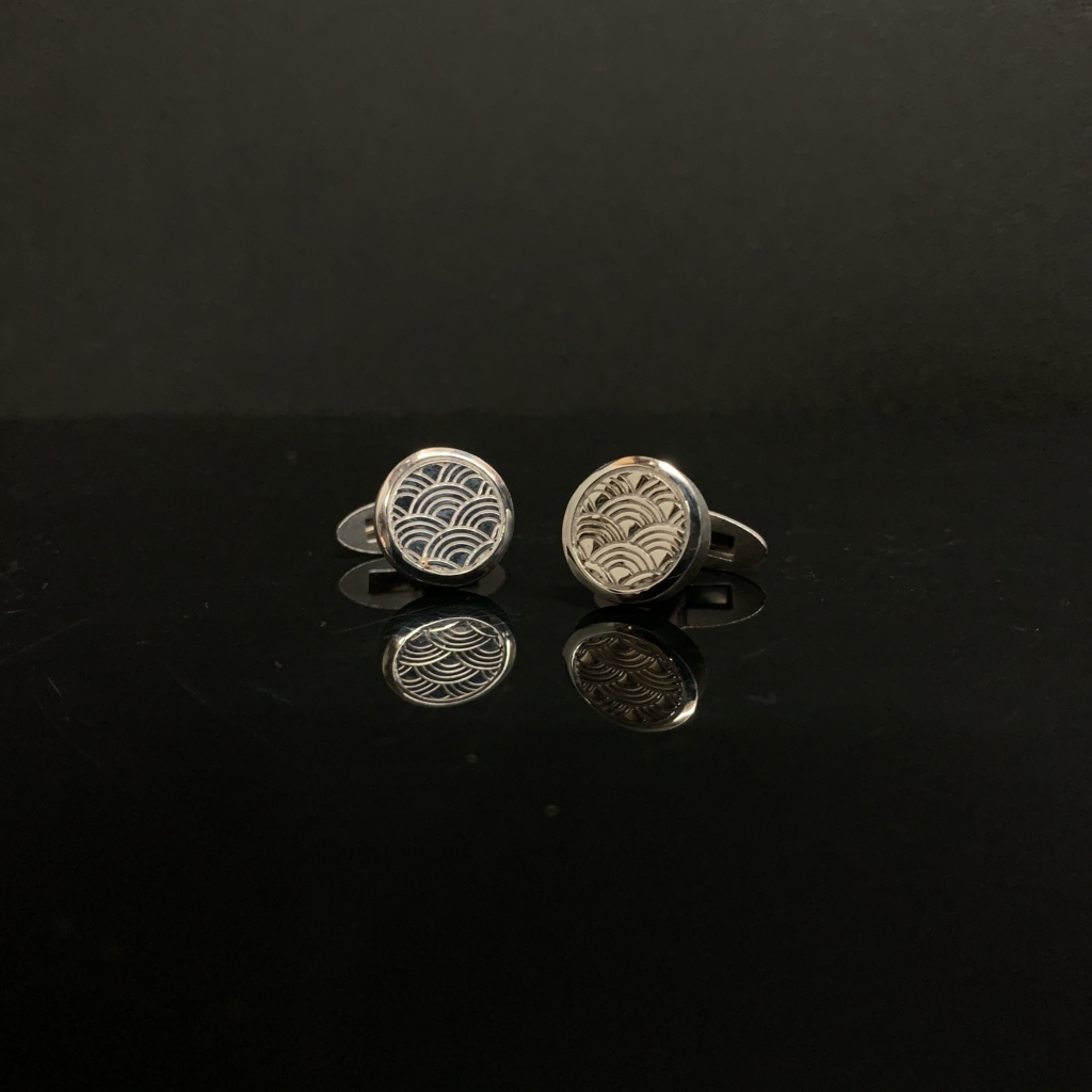 日本の伝統を感じさせるデザインと、現代的な金属加工技術が融合した青海波カフス。