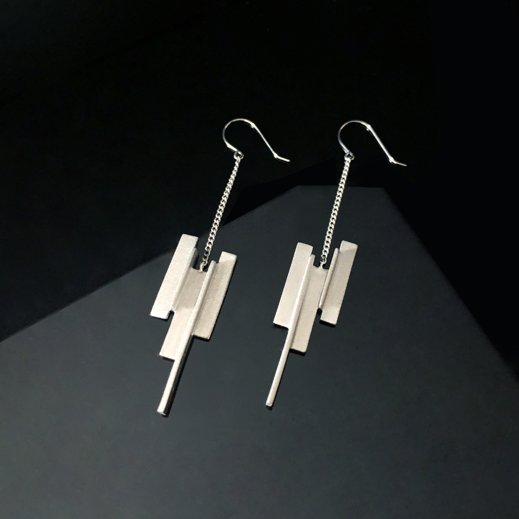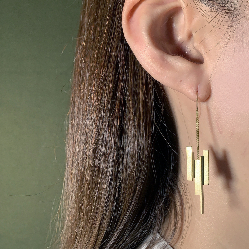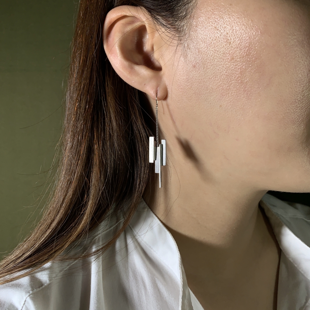 ピアス本体にはシルバー925を使用。金属としての強さと、その控えめな輝きがつららの持つ「寒さ」「静けさ」「透明さ」を表現するのに理想的な素材。デザインは直線と鋭角を組み合わせたミニマルなフォルム。無駄を削ぎ落とすことで、耳元にぶらさがったときに「冬の空気感」が自然と宿るような仕上がりを目指しました。大きさや幅、角度にいたるまで細かく調整し、一見シンプルながらも見る角度で輝きや陰影が変化するよう設計しています。