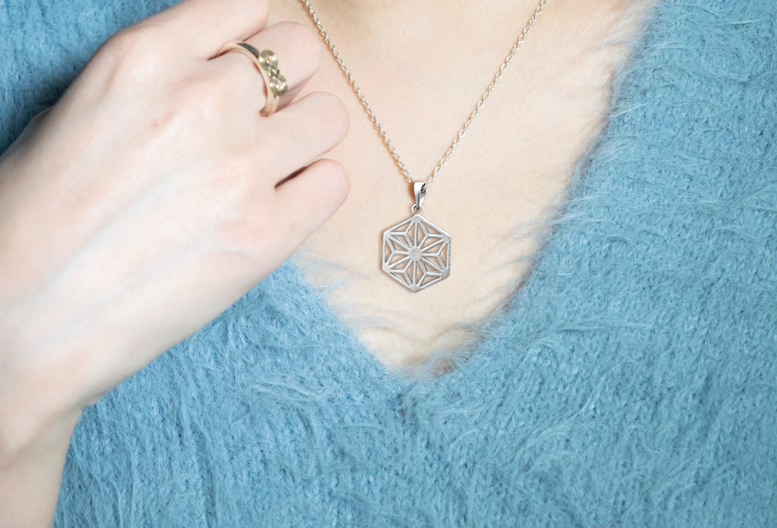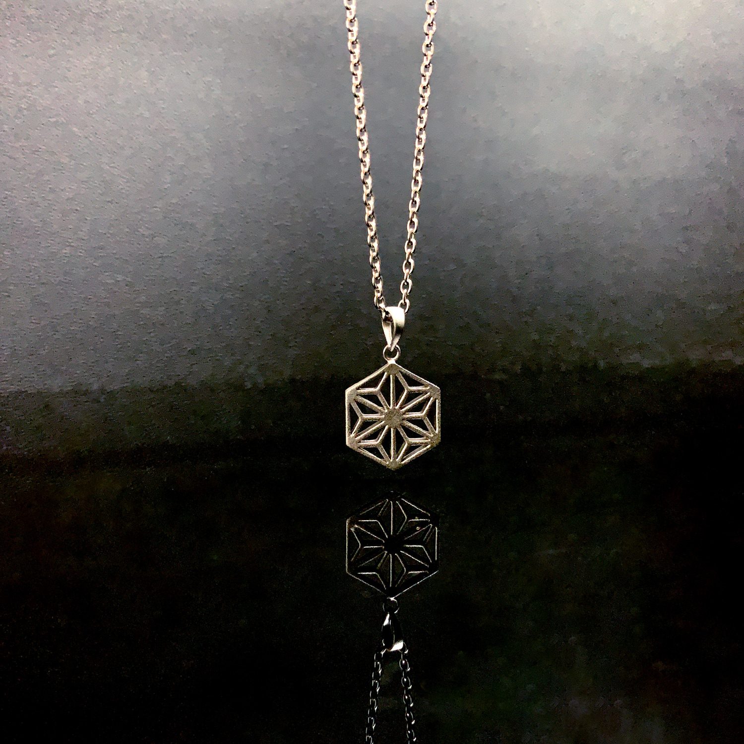- 日本の伝統文様の【麻の葉文様】を表現したシルバーネックレス。